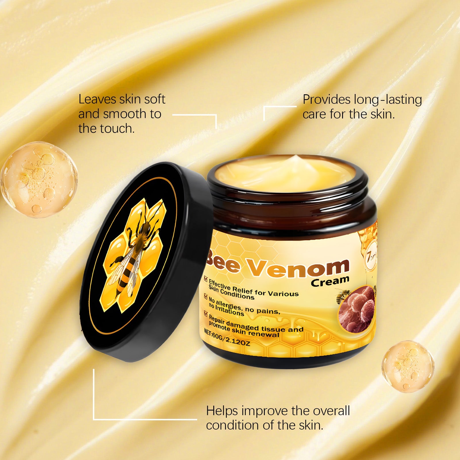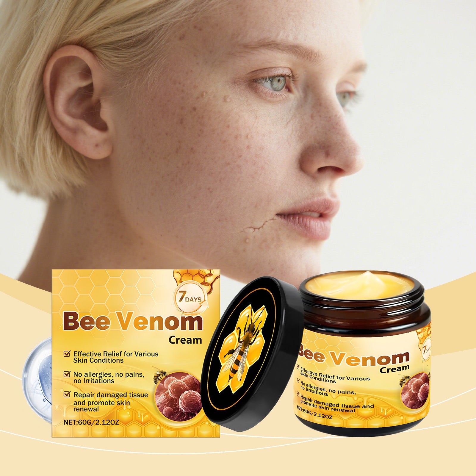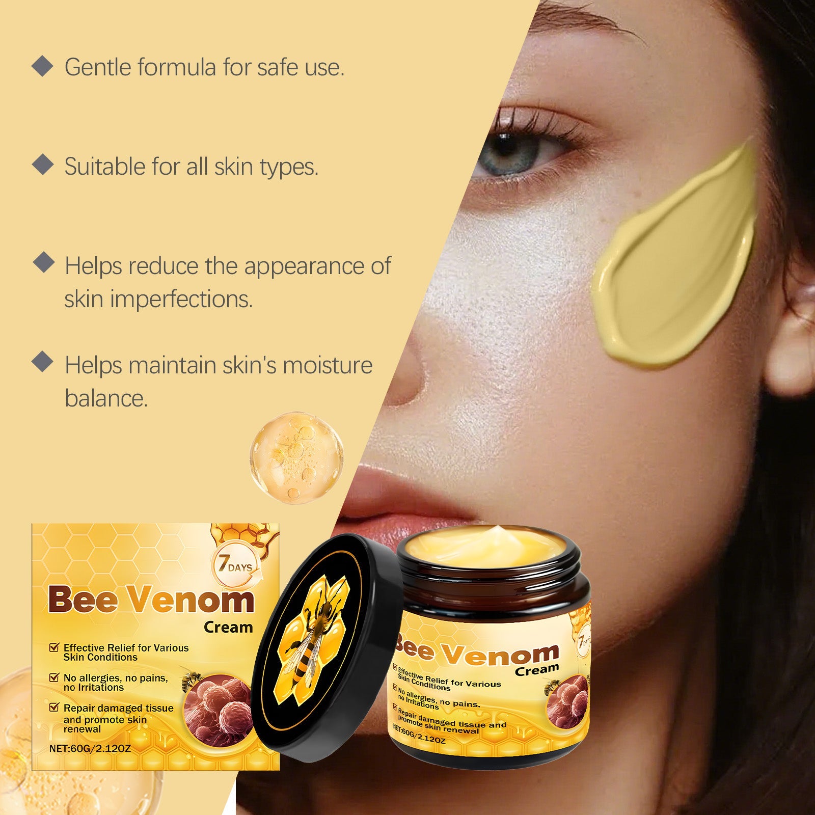 AMZ Bee Venom Skin Care Cream Is Gentle, Moisturizing, Hydrating, Smooth And Delicate. It Is Suitable For Daily External Application And Skin Care