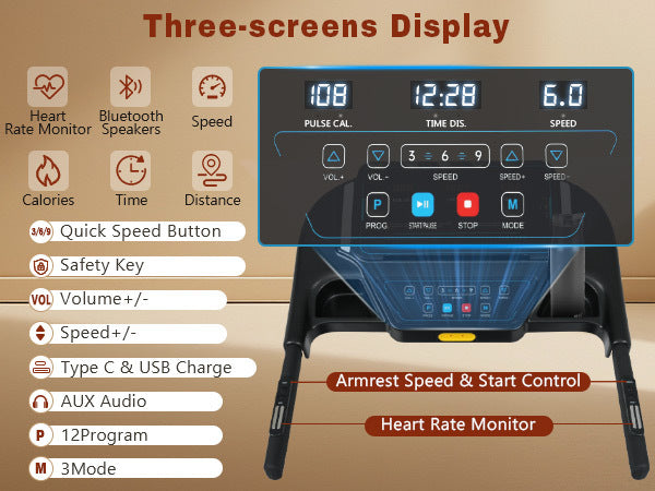 New Treadmills for Home, 3.5HP Hydraulic System Auto Foldable Treadmill with Incline,10MPH 350Lbs Weight Capacity Electric Treadmills with Heart Rate Sensors,Type C & USB Charge ,Bluetooth Speaker