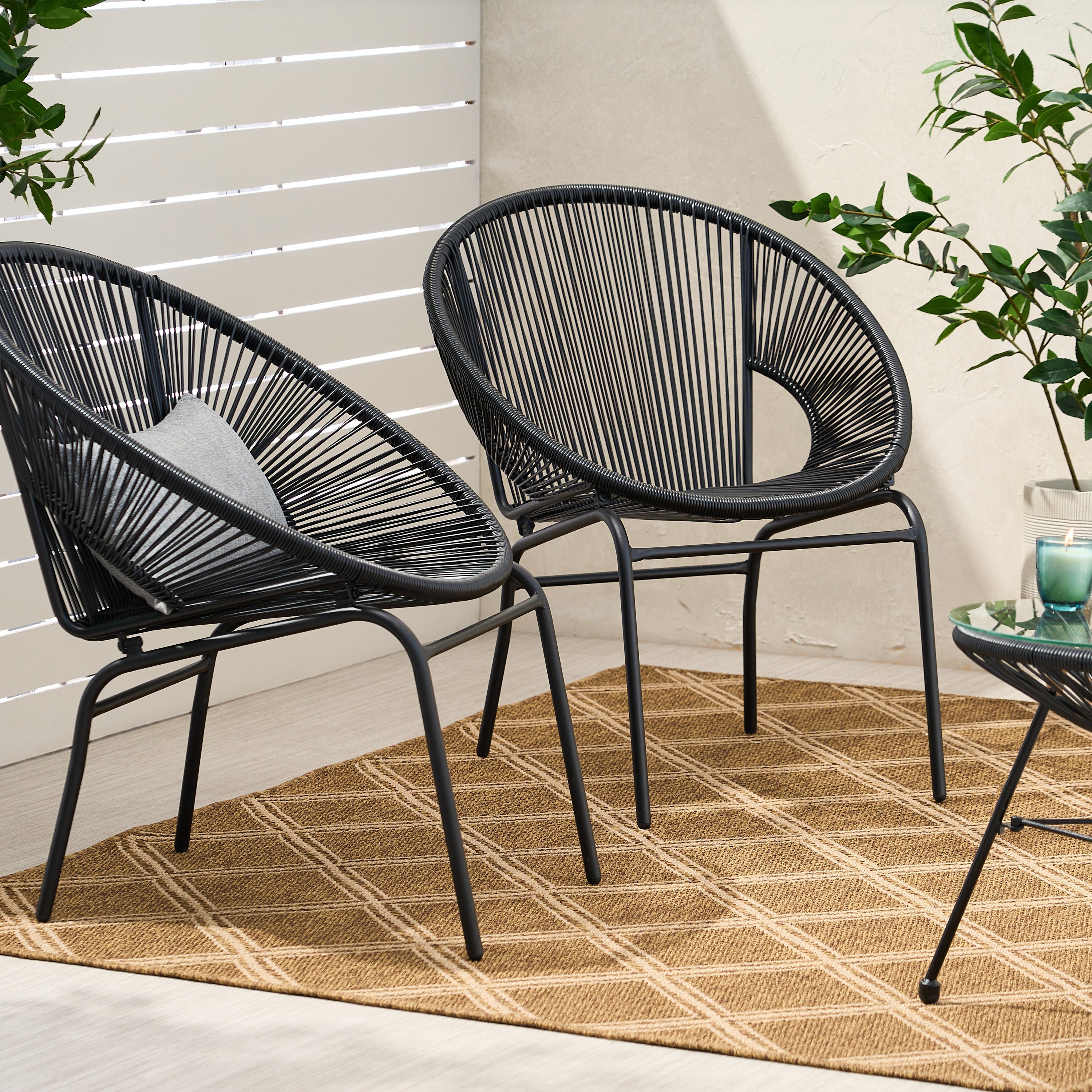 Outdoor Faux Rattan/Iron Metal Club Chair, Set of 2, Black