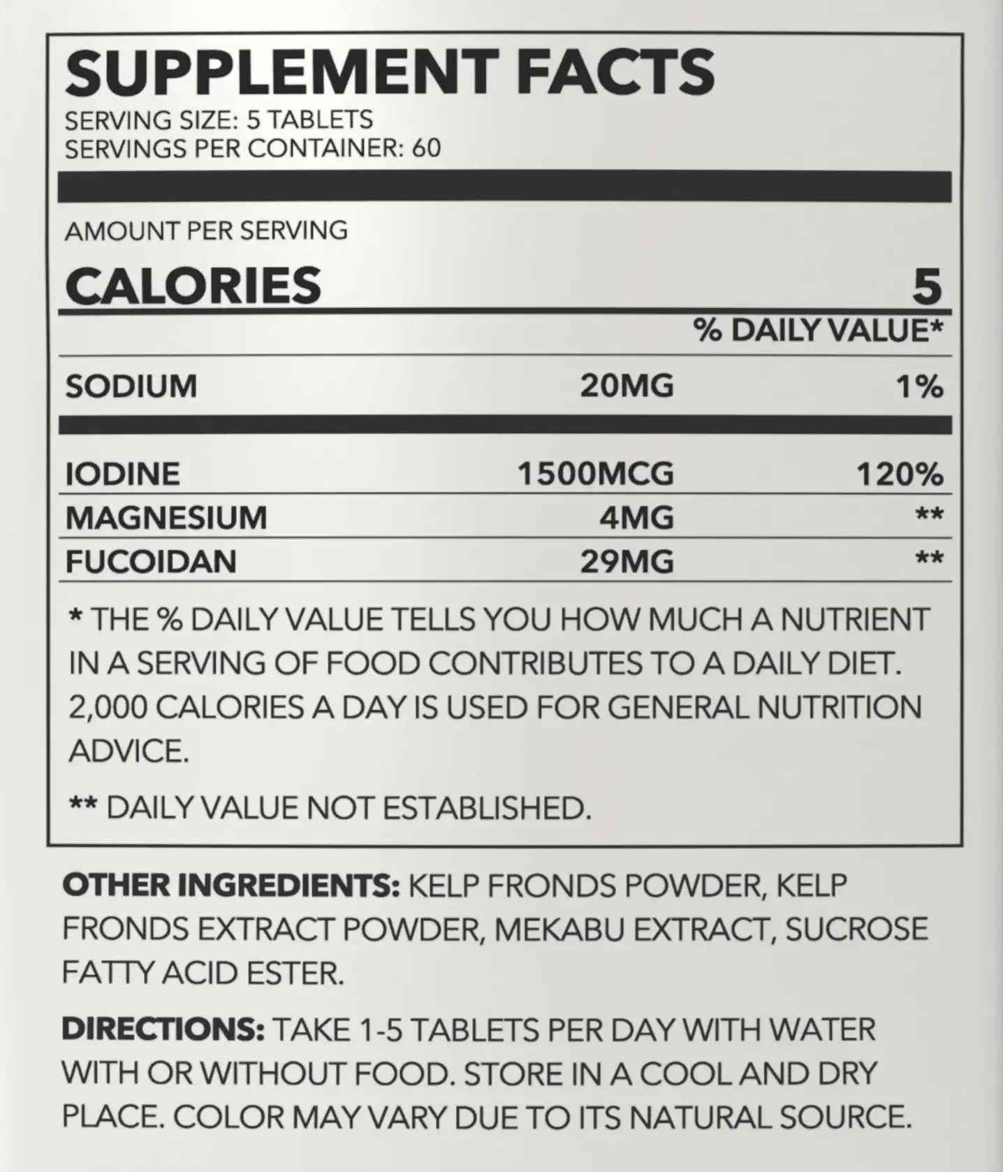 We stand behind our products and are confident that you will love Pure Oceanic Kelp Iodine Tablets. If for any reason you're not satisfied, we offer a hassle-free return policy within 30 days of purchase. Your health and happiness are our top priorities!