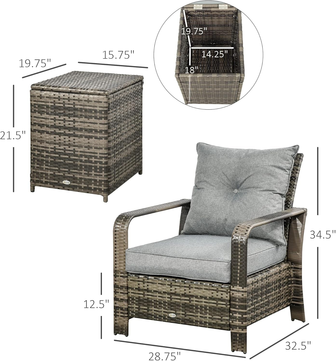 Three Piece Patio Furniture Set with Cushions and Table