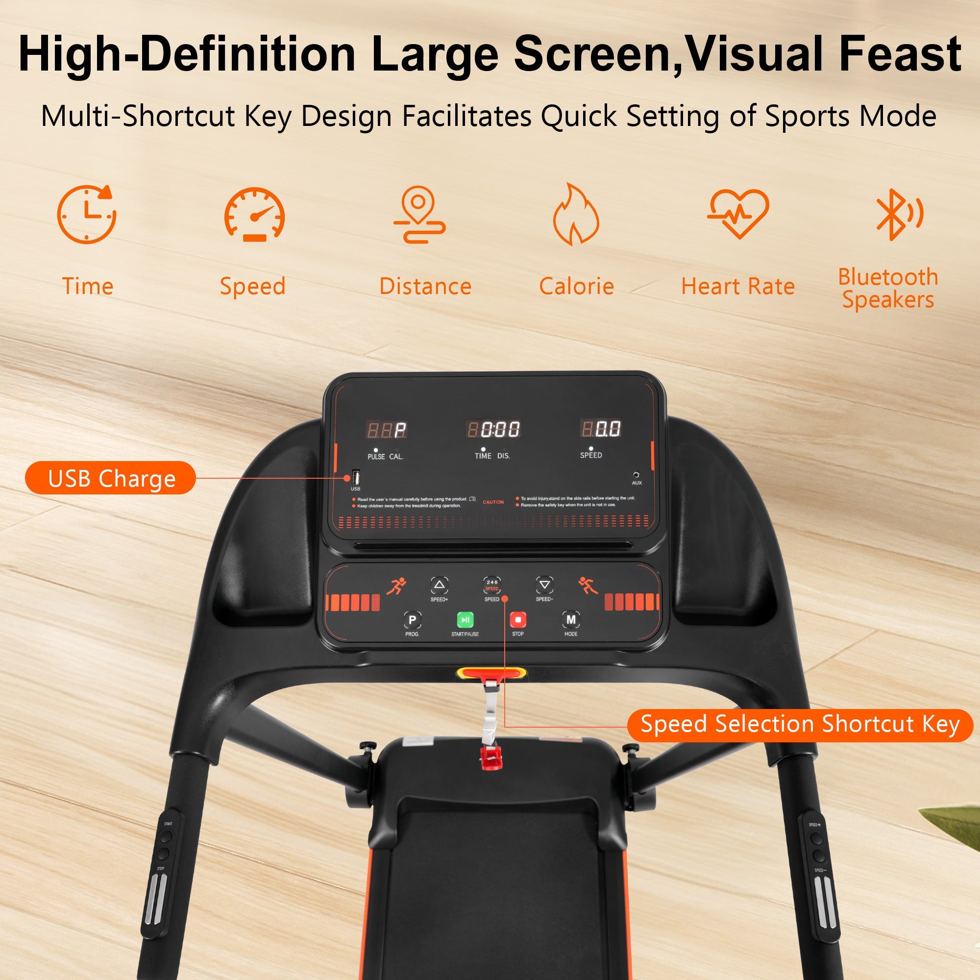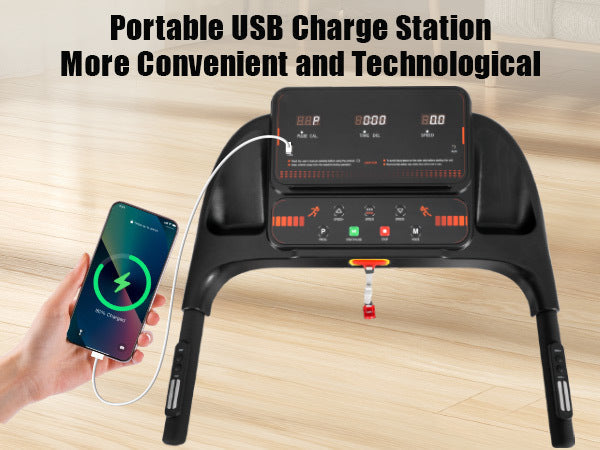 Treadmills for Home, 2.5HP Quiet Folding Treadmill with Heart Rate Sensor, 300lbs Weight Capacity, 7.5MPH, Incline Treadmill With USB Charge Station For Android & Bluetooth Speaker, 6 Shock-Absorbing