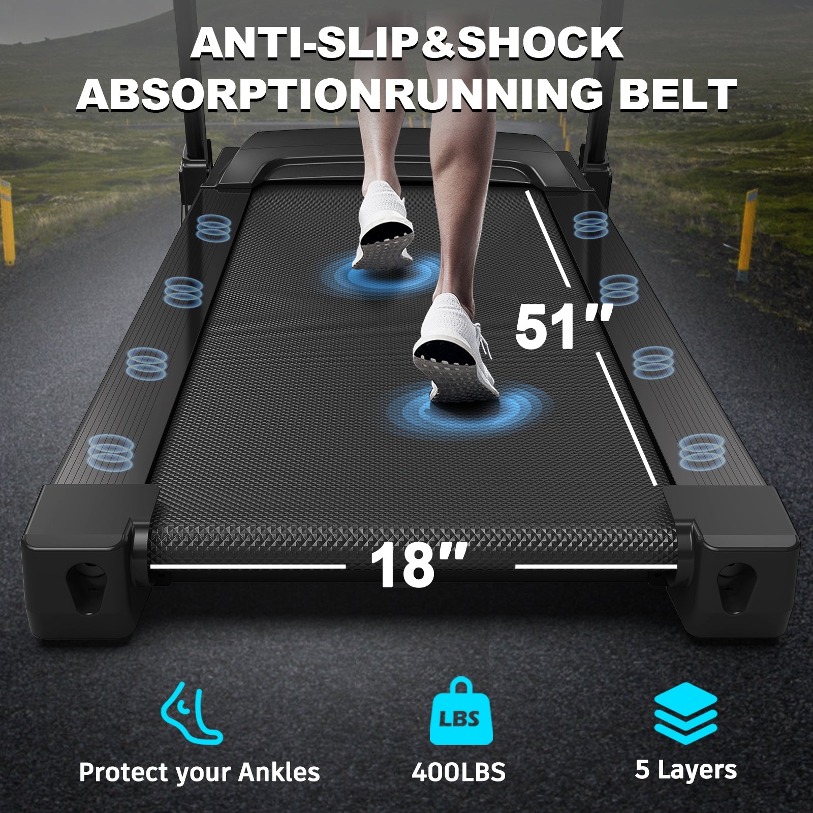 Treadmills for Home, Electric Treadmill with Automatic Incline, Foldable 3.5HP Workout Running Machine Walking, Double Running Board Shock Absorption Pulse Sensor Bluetooth Speaker APP FITSHOW.400lbs